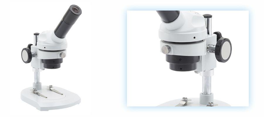 Monocular de 20x, con distancia de trabajo DT: 57mm, diseñado para aplicaciones de laboratorio en el colegio. Sin iluminación.