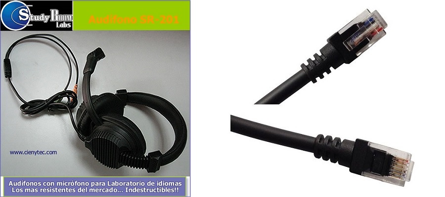 - Toma para puerto tipo plug modular RJ11 (apropiado para reemplazar audífonos Europeos como Sanako, Roycan y otros)