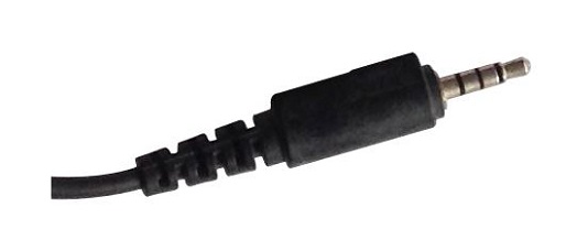 - Conector de un plug stereo de 3.5mm tipo TRRS, (que se usan en los celulares, tabletas y PCs recientes), con contacto para el audífono y otro para el micrófono. Ver imagen de conector TRRS