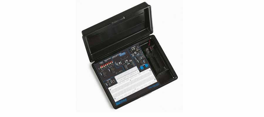 Entrenadores portátiles en electrónica de Global Specialties en estuche: circuitos análogos y diseño lógico
