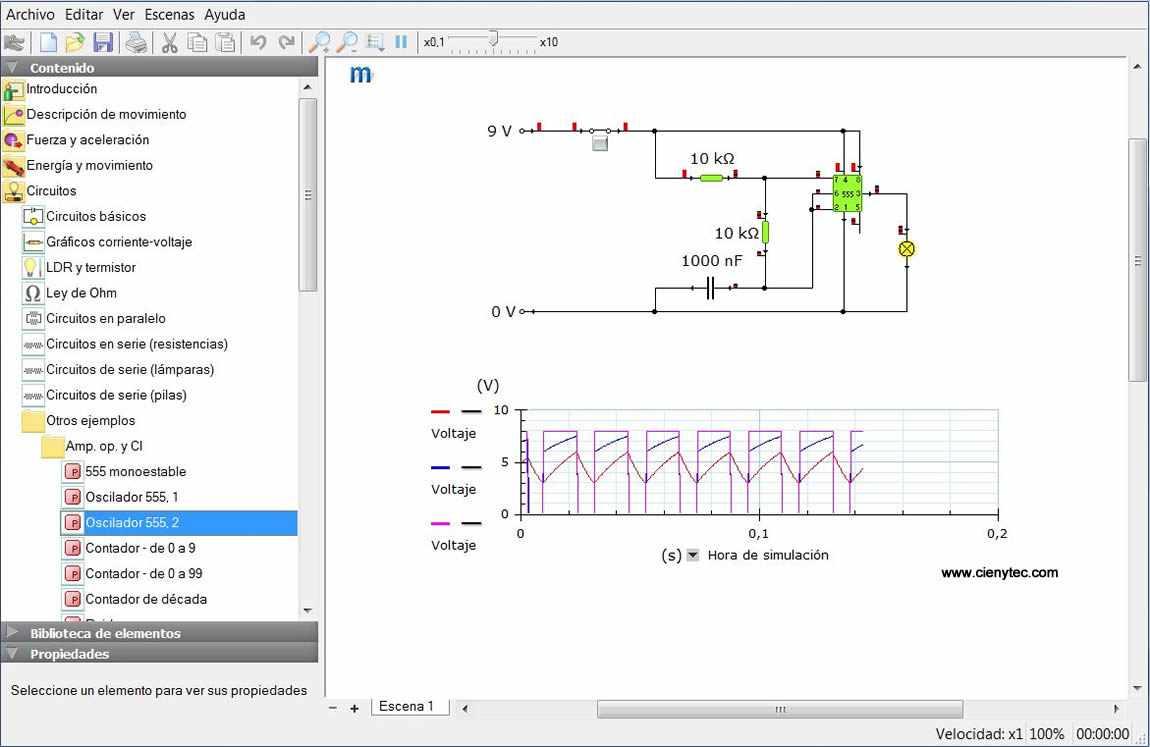 Cuenta con recursos introductorios y guía de inicio que muestra el uso de kits y elementos generales, elementos de presentación y gráficos, configuración de circuito simple, diagrama de rayos, o experimentos de movimiento y ondas.