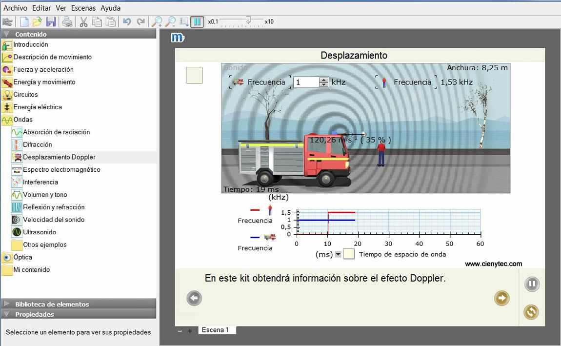 Permite estudiar el comportamiento de las ondas en los tres ámbitos: electromagnético. Acústico y en agua. Incluye temas como absorción de radiación, difracción, desplazamiento Doppler, espectro electromagnético, interferencia, volumen y tono, reflexión y refracción, velocidad del sonido, ultrasonido. Leer más