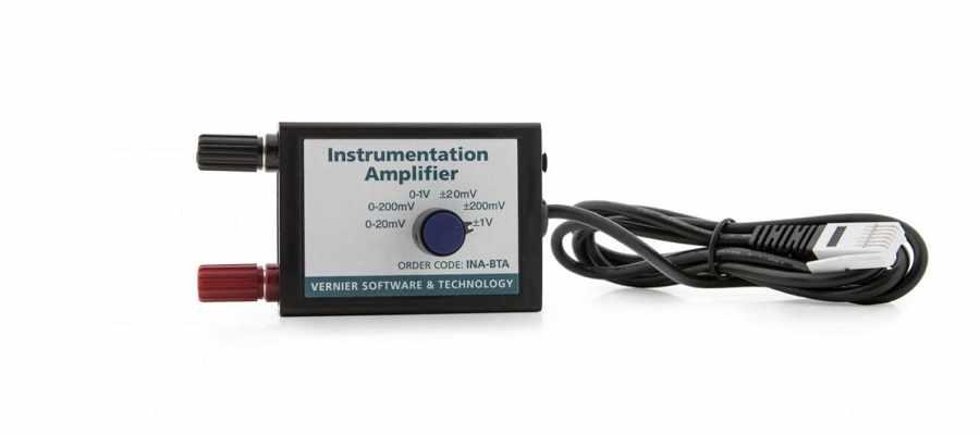 Amplificador de instrumentación Vernier ref. INA-BTA: se usa para conectar una gran variedad de equipos de medida a las interfases de Vernier y recolectar, almacenar y analizar datos electrónicamente.