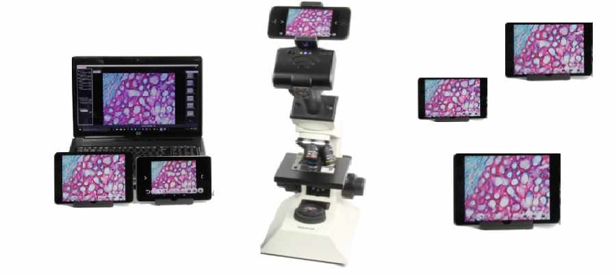 Tres productos indispensables para el ámbito científico: Microscopios digitales Proscope para uso académico, Cámaras digitales que se instalan en el ocular de un microscopio y transmiten a dispositivos móviles y PCs y Microscopios de mano USB que también pueden acoplarse al ocular del microscopio.