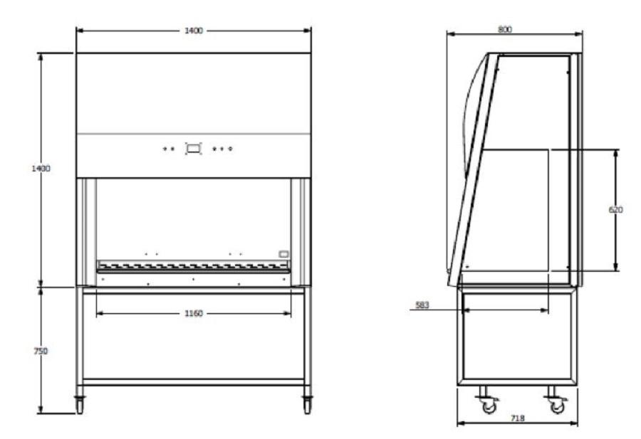 - Sistema de flujo de aire: 70% de recirculación de aire, 30% de escape de aire A2 Cabina adecuada para trabajar con investigaciones microbiológicas en ausencia de productos químicos volátiles o tóxicos y radionúclidos.