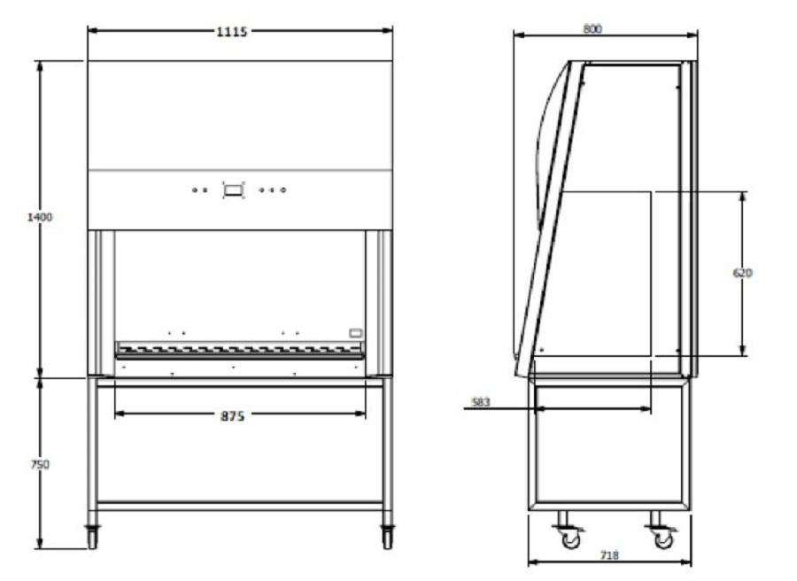 - Iluminación: Luz fluorescente blanca según normatividad internacional ubicada fuera del área de contaminación con acceso fácil para cambio y más de 1000 Lux medida en la línea central de la mesa.